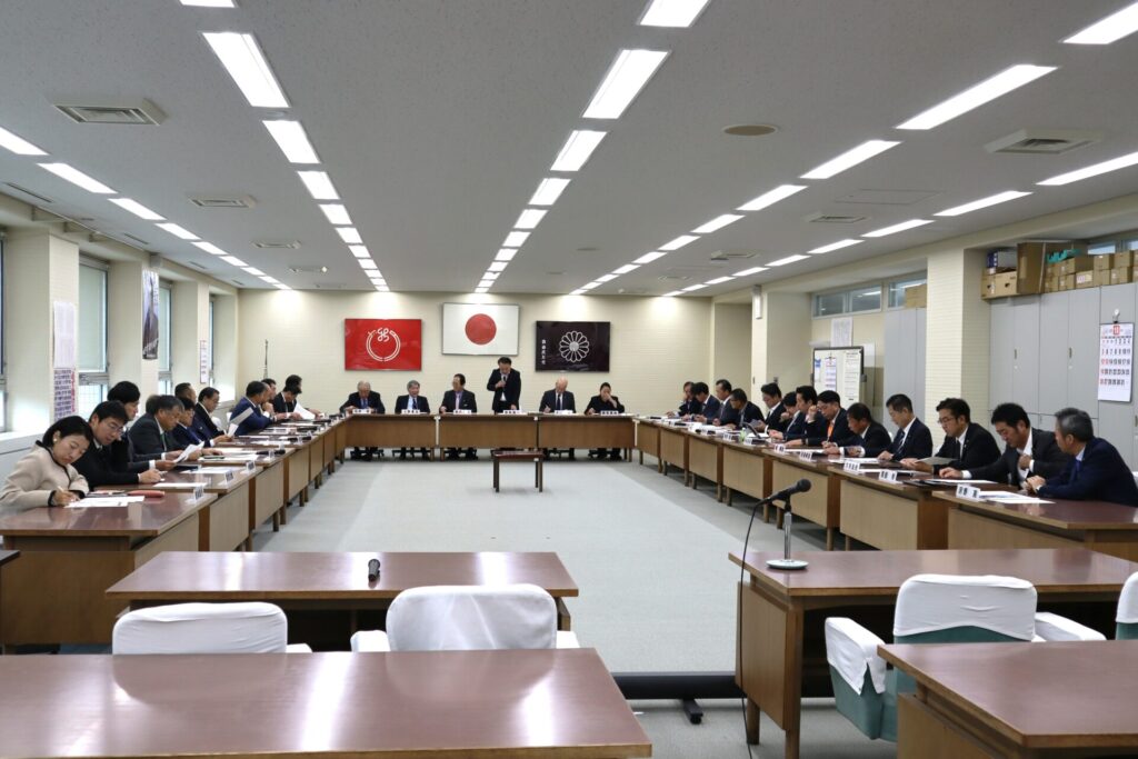 9月定例会最終日、11時に党議を開き岩村良一 幹事長と高橋直揮 政調会長から党務報告、与口善之 議会対策委員長より20日に行われた議会運営委員会で決定された事項について説明がなされました。