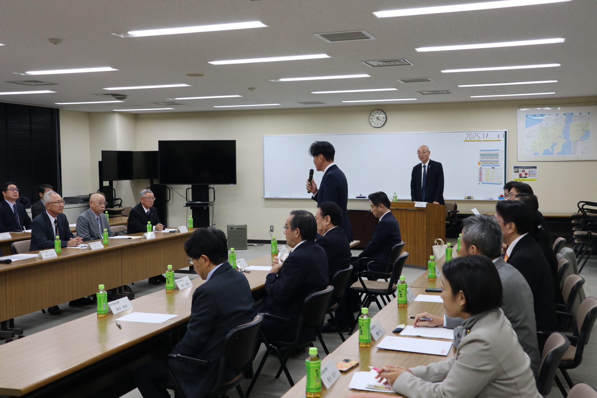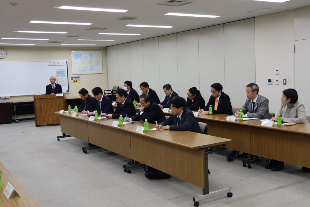 翌20日には、県連4役(岩村良一 幹事長、中村康司 総務会長、高橋直揮 政務調査会長、与口善之 議会対策委員長)が東京都議会自民党役員(小松大祐 都議会自民党幹事長、菅野弘一 都連幹事長、平田みつよし 都議会自民党幹事長代行、浜中のりたか 都議会自民党副幹事長)と会談を実施。電力消費地との連携を強化するうえで重要な一歩となりました。