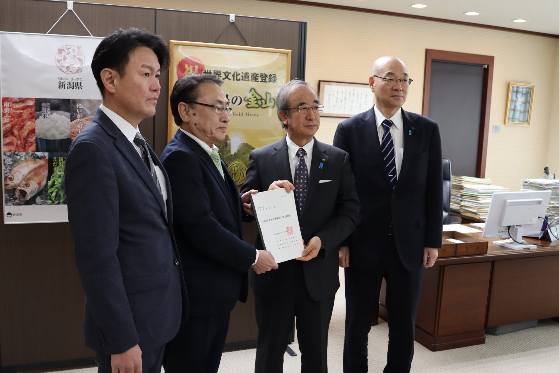 岩村良一 幹事長、高橋直揮 政務調査会長、与口善之 議会対策委員長は、1月26日、花角知事と面会し、令和8年度予算編成に係る要望を約1時間にわたり行いました。今回の要望は、県内友好団体から寄せられた多岐にわたる意見・課題を取りまとめたもので、県民生活の安全・安心を守り、地域の活力を維持・向上させるために必要な施策を幅広く盛り込んでいます。